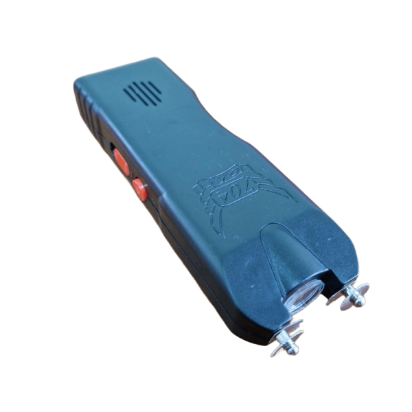 На додаток до перемикача режимів потрібно ще натиснути червону кнопку для активації шокера, яка служить для запобігання випадковому включенню та ураження струмом.